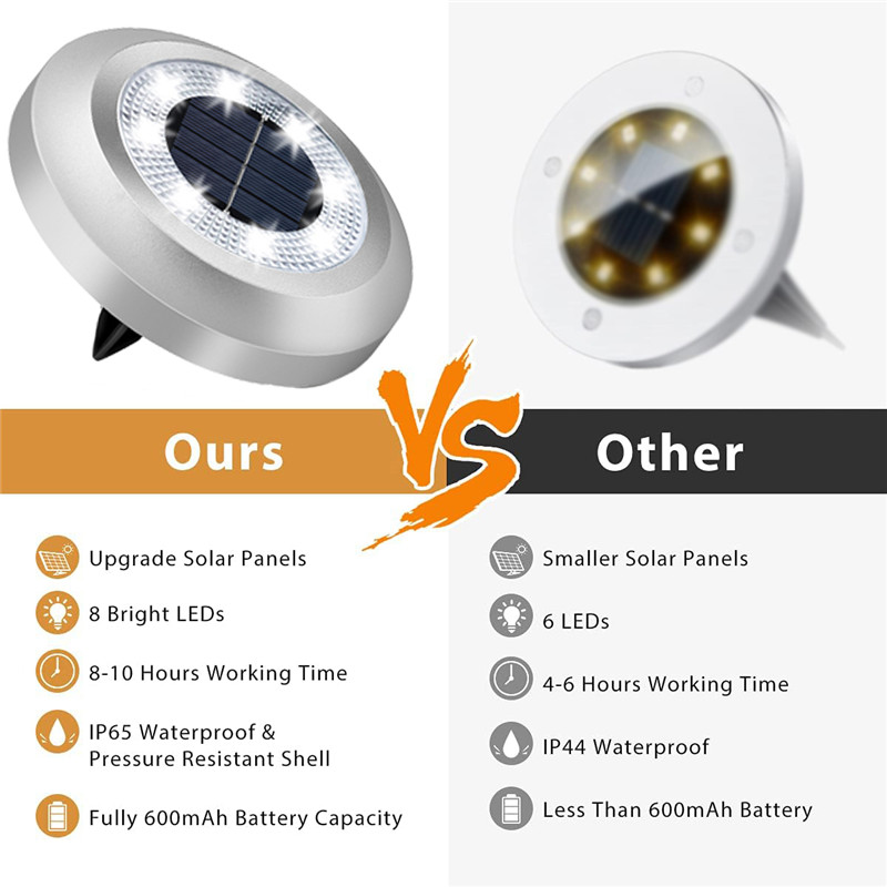 • Write A Review About "AMUFER 8 Pack Solar Ground Lights, 2024 Upgraded Solar Lights Outdoor Garden, Disk Lights Decking Lights Solar Garden Lights for Lawn Pathway Yard Landscape Walkway(White Light)'